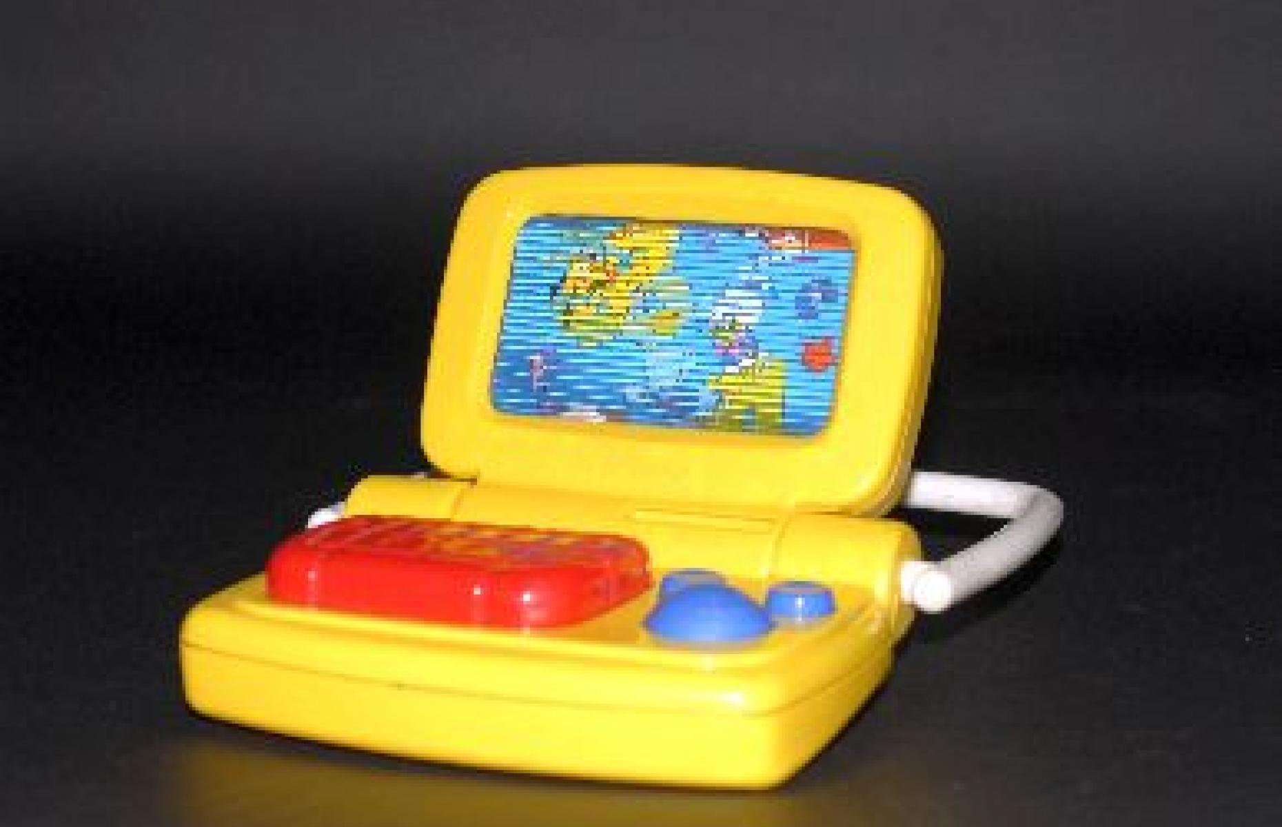 Eine große Tastaturtaste, zwei blaue runde Tasten, ein Trackball. Das Display besteht aus geriffeltem Plastik, je nach Blickwinkel und Stellung des "Bildschirms" werden verschiedene Disney-Motive angezeigt.