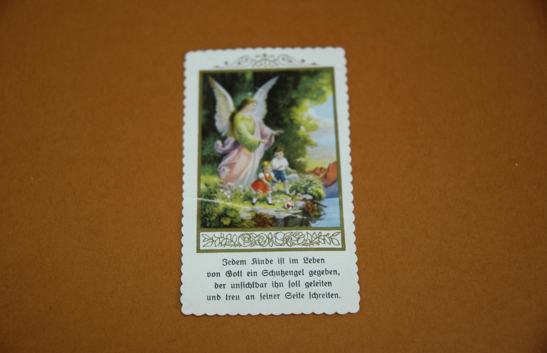 Klassisches Motiv: Weiblicher Engel bewacht am Abgrund ballspielenden Knaben und Mädchen.