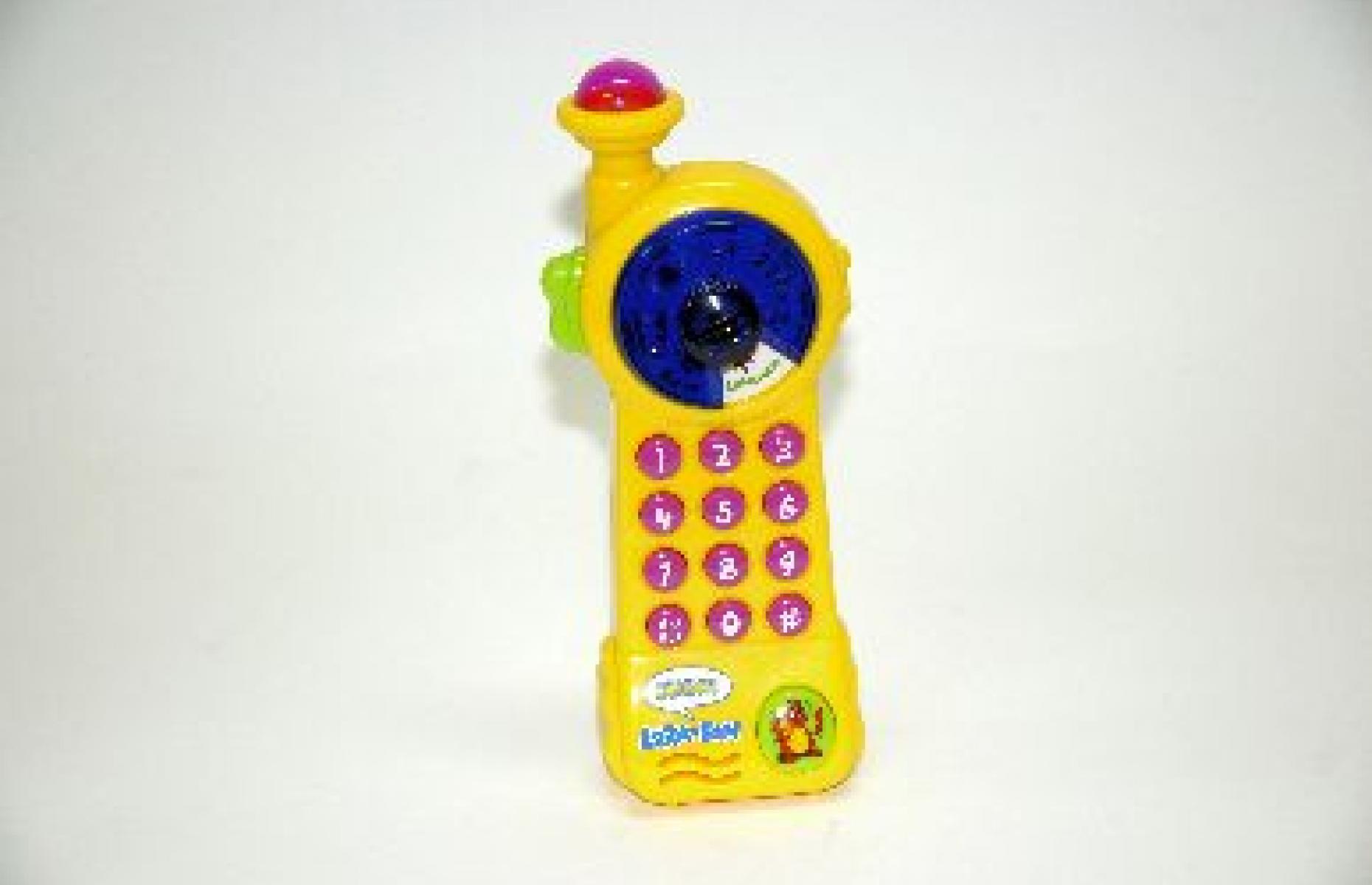Schnurloses Telefon aus Plastik mit Tasten und Antenne. Lernfunktionen: Zählen, Rechnen, Zahlen merken, Lichtertanz, Sing mit, Telefonnummern, Lora sagt.