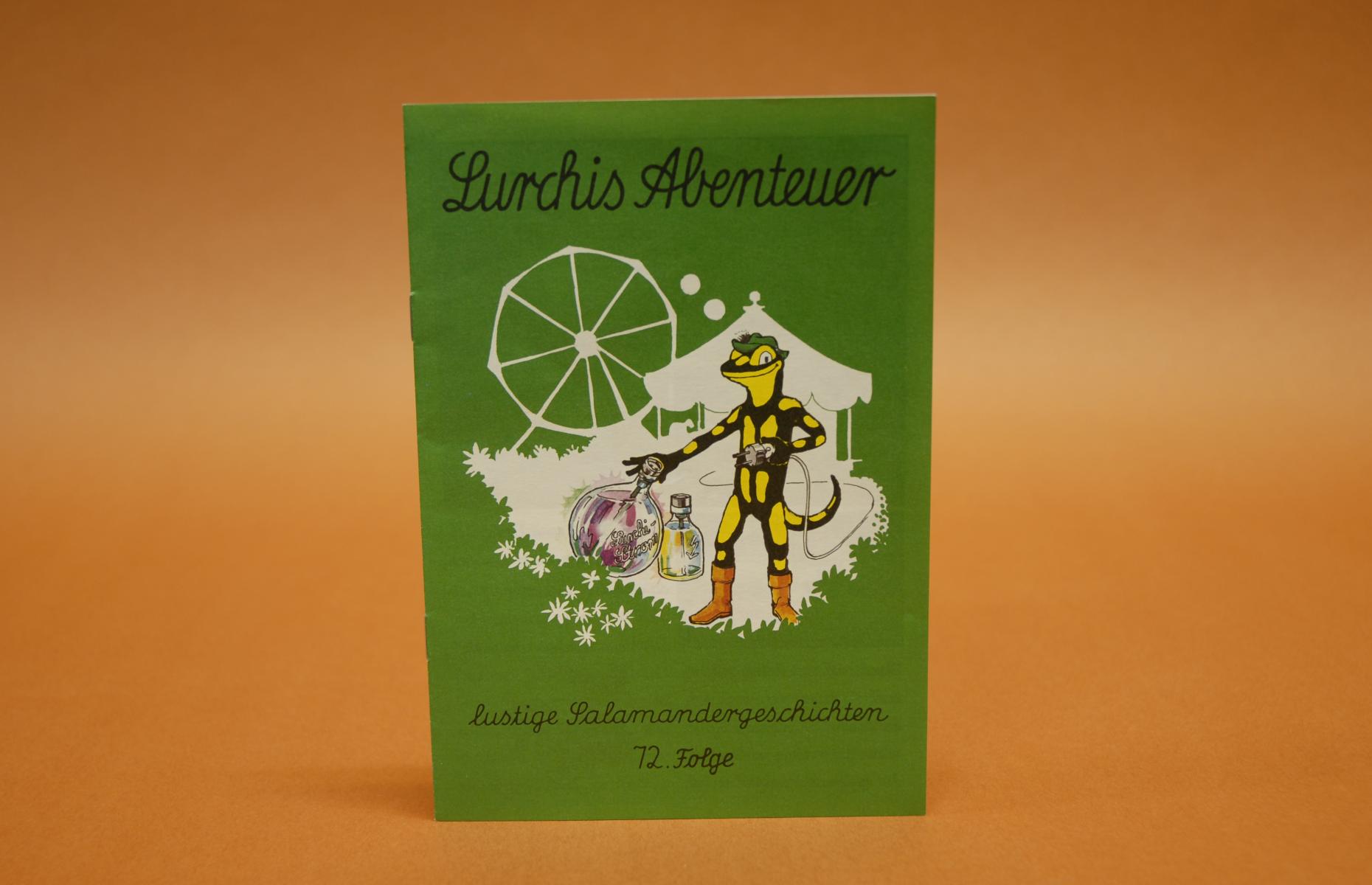 Viele bunte Illustrationen, Texte in Reimform und Schreibschrift. Manche Wörter rot gedruckt (z.B. "Salamander").