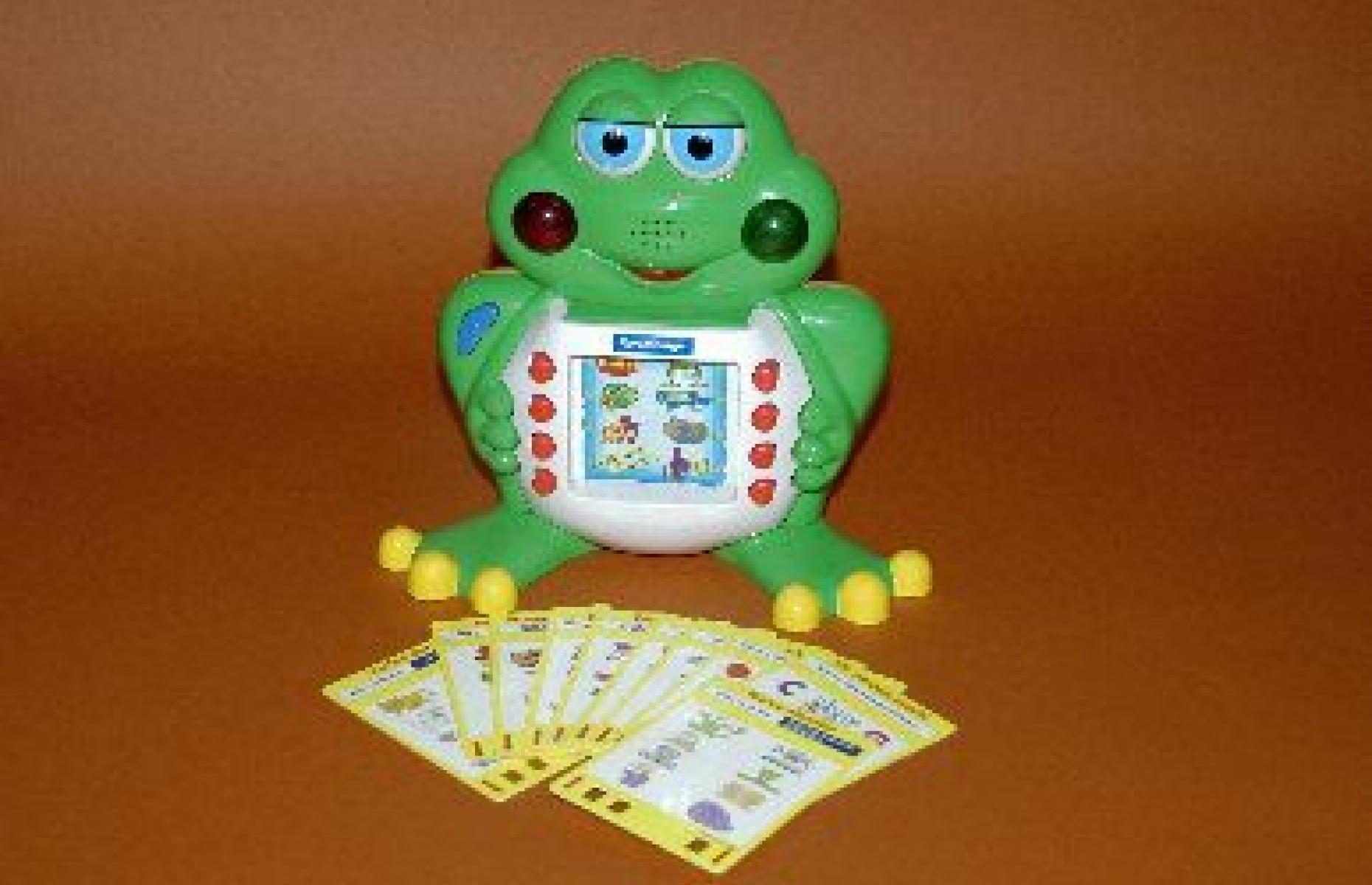 Die Karten werden in den Bauch des Froschs gesteckt. Die Stimme stellt Aufgaben, z.B. müssen die passenden Paare gefunden werden. Bei richtiger Antwort leuchtet die Backe des Frosches. 20 verschiedene Lernmodi: Zahlen, Melodien, Töne, Sprache, Tierlaute.