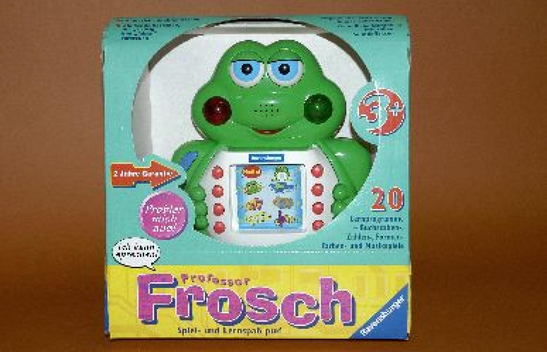 Die Karten werden in den Bauch des Froschs gesteckt. Die Stimme stellt Aufgaben, z.B. müssen die passenden Paare gefunden werden. Bei richtiger Antwort leuchtet die Backe des Frosches. 20 verschiedene Lernmodi: Zahlen, Melodien, Töne, Sprache, Tierlaute.