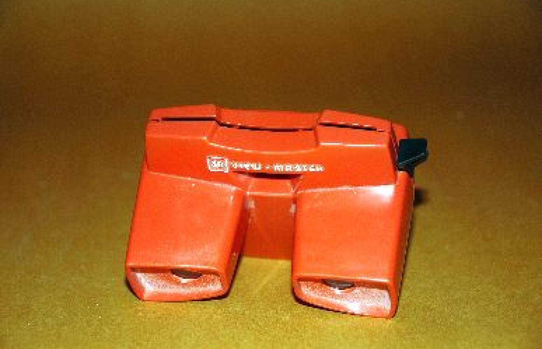 Betrachtungsgerät mit zwei Gucklöchern und integrierten kleinen Linsen, das direkt vor die Augen gehalten wird. Die Bilder sind in Form von Dias auf eine Pappscheibe aufgebracht. Die einzelnen Scheiben auch "Reels" genannt, bestehen aus sieben Stereo-Bildpaaren. Nach dem stereoskopischen Prinzip wird jedem Auge eine jeweils leicht unterschiedliche Version desselben Bildes gezeigt, sodass ein dreidimensionaler Eindruck vermittelt wird. Für den Betrachter scheint sich dadurch ein kleiner Raum zu öffnen, indem eine greifbare Welt existiert. Die Funktionsweise des View-Masters hat sich bis heute nicht grundsätzlich geändert. Der seitlich angebrachte Hebel dient zum Drehen der Scheibe.