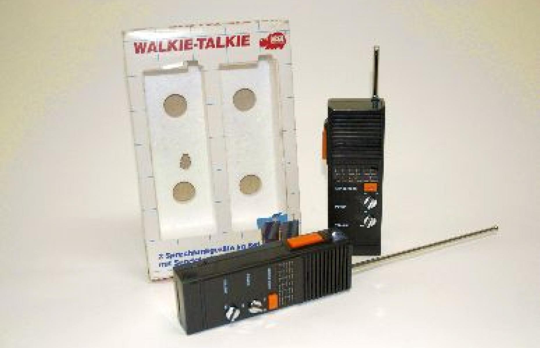 Lautstärkeregler, Lautsprecher, Teleskopantenne, Morsetaste mit Morsealphabet. Reichweite ca. 600 m im Freien.