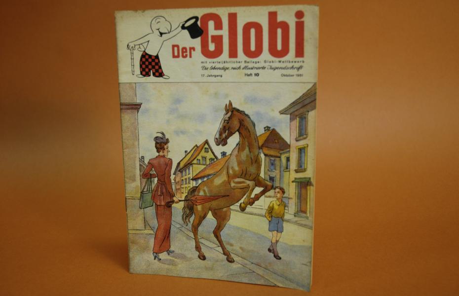 - MedienverbündeDer Globi, eine Kinderzeitschrift mit Comic-Anteil, erschien von 1935 bis in die 70er Jahre hinein. Der Inhalt bestand aus schwarz/weißen Globi-Bildergeschichten, sowie Geschichten, Rätseln, Bastelanleitungen, Leserbriefen und Wissenswertem . Auf der letzten Seite fand sich eine farbige Bildergeschichte. Der Globi war in allen Filialen der Globus-Warenhauskette in der Schweiz, aber auch im Abonnement und per Post im Ausland erhältlich.