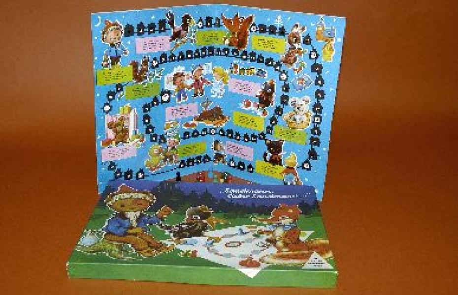 Durch Drehen der Rolle nach rechts, wird das darin befindliche Bild weiterbewegt und man kann die verschiedenen Reisestationen des Weihnachtsmanns betrachten.