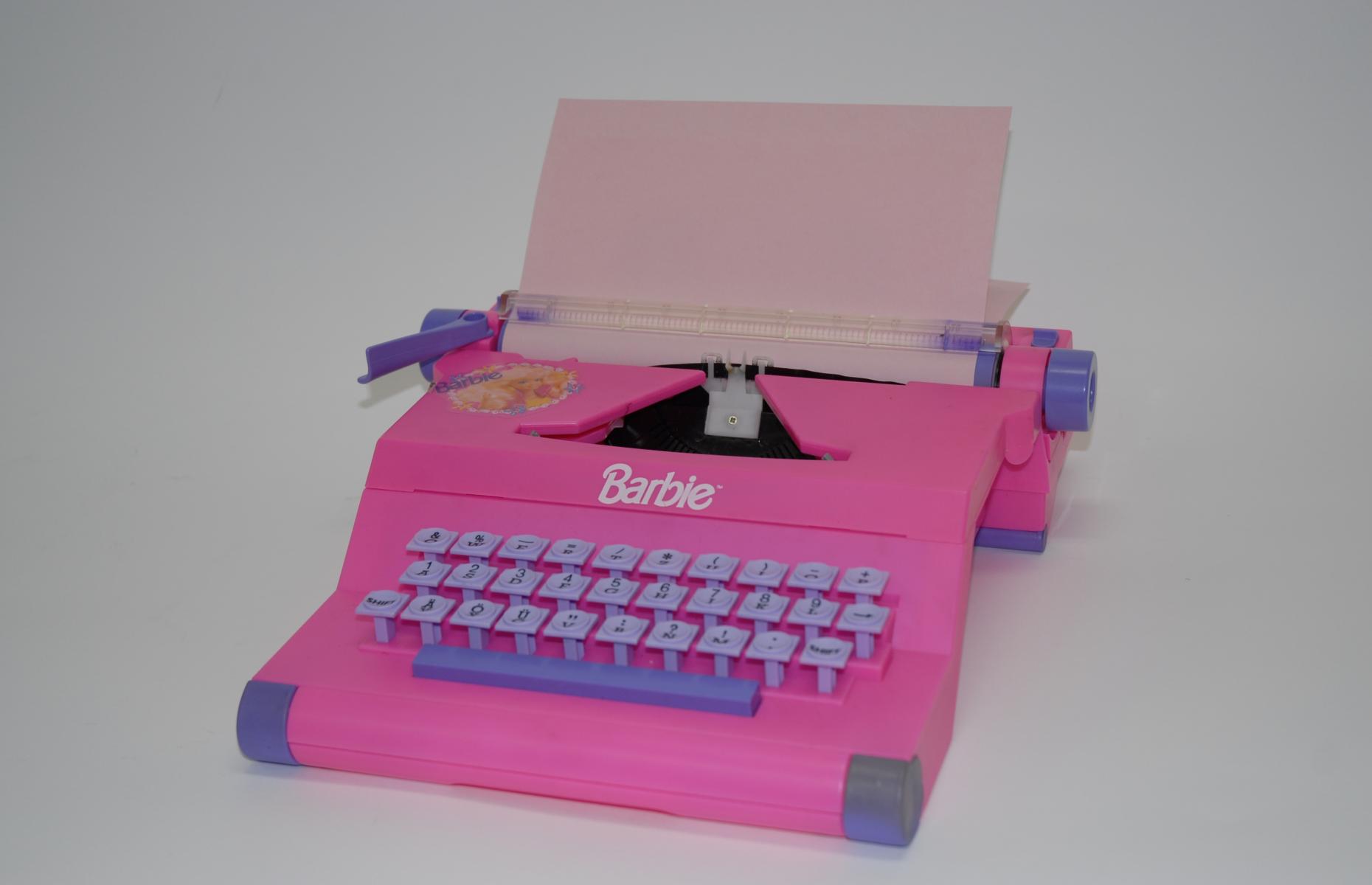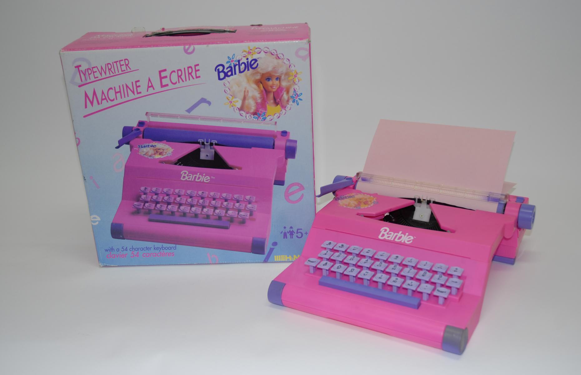 Die Maschine ist voll funktionsfähig und wie eine echte Schreibmaschine zu benutzen. Hebel für Papiertransport, Walzenlöser, Auswechselbare Farbbandkassette, Papierhalter, Papierlöser, Wagenrücklauf, Leertaste, 54 Tasten. In pink und lila gehalten. Für Kinder ab 4 Jahren.