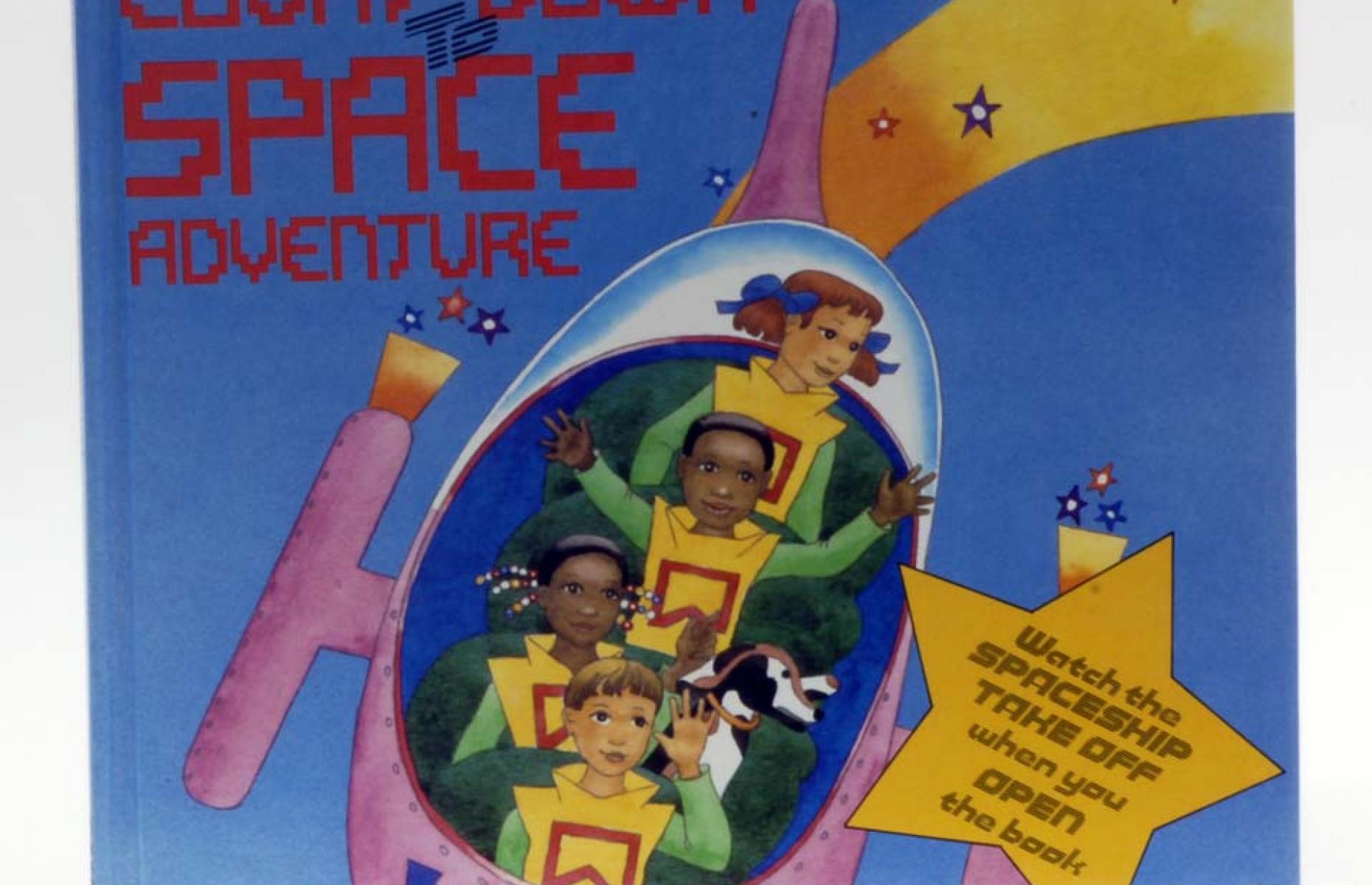 In der Mitte des Buches klappt ein Raumschiff auf, das sich beim Umblättern scheinbar weiterbewegt.
