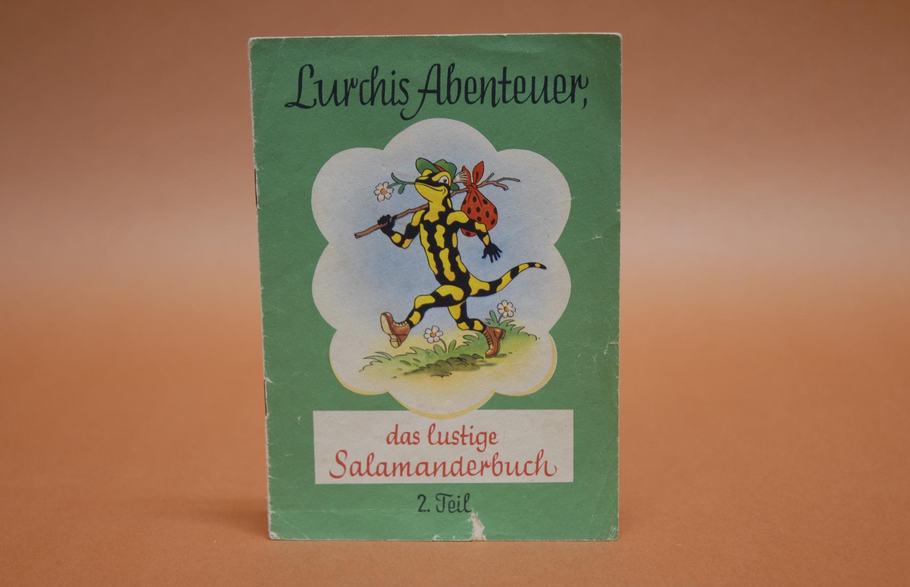 Viele bunte Illustrationen, Texte in Reimform und Schreibschrift, manche Worte rot gedruckt (z.B. "Salamander"); wertvolle alte Auflage.