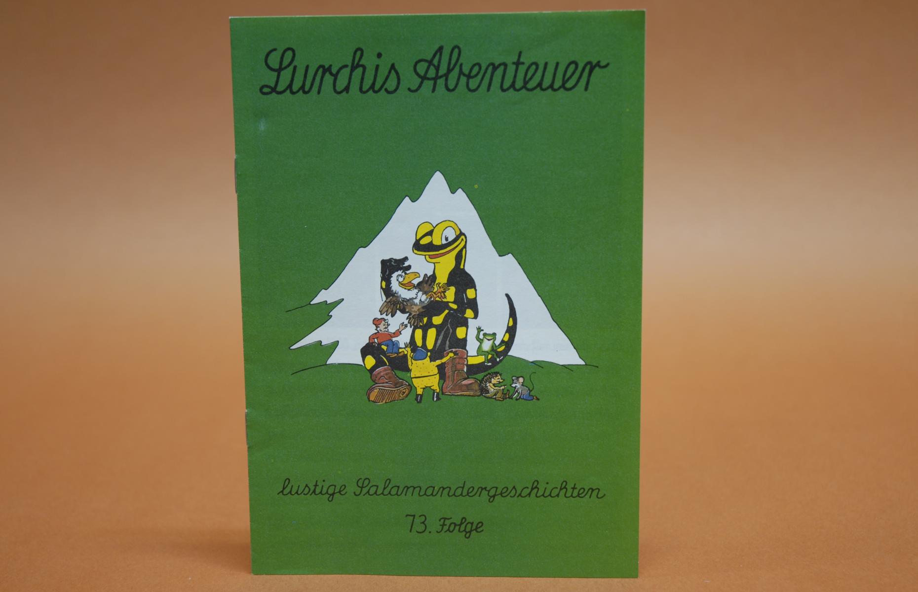 Viele bunte Illustrationen, Texte in Reimform und Schreibschrift. Manche Wörter rot gedruckt (z.B. "Salamander").