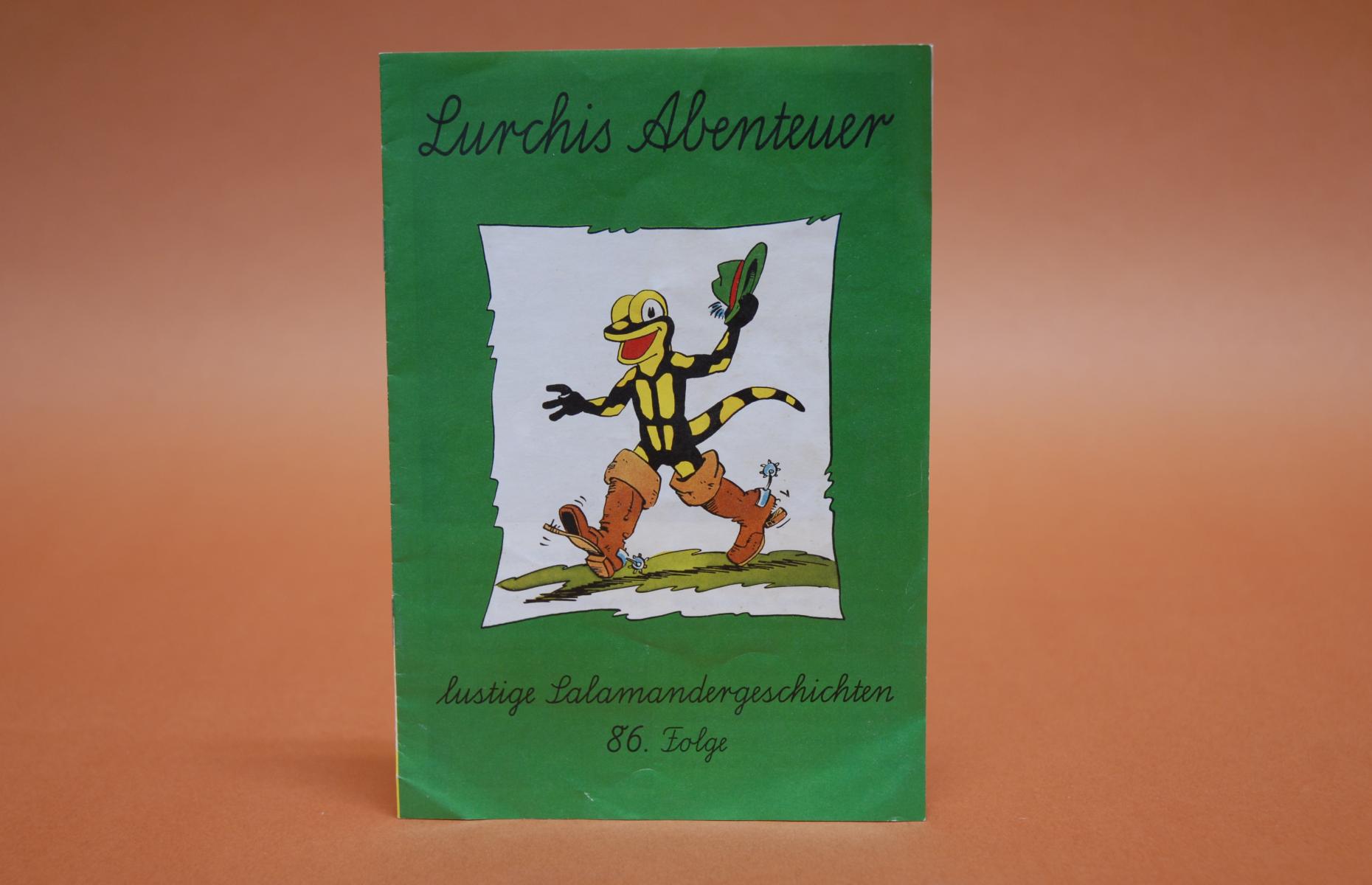 Viele bunte Illustrationen, Texte in Reimform und Schreibschrift. Manche Wörter rot gedruckt (z.B. "Salamander").