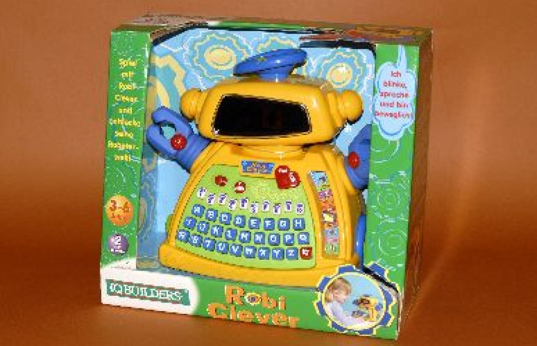 Mit farbigem, animierten Display, 10 Lernprogramme zu Buchstaben, Zahlen, Formen, Wörtern und Kinderliedern. Arme und Räder beweglich; Sounds und Roboterstimme.