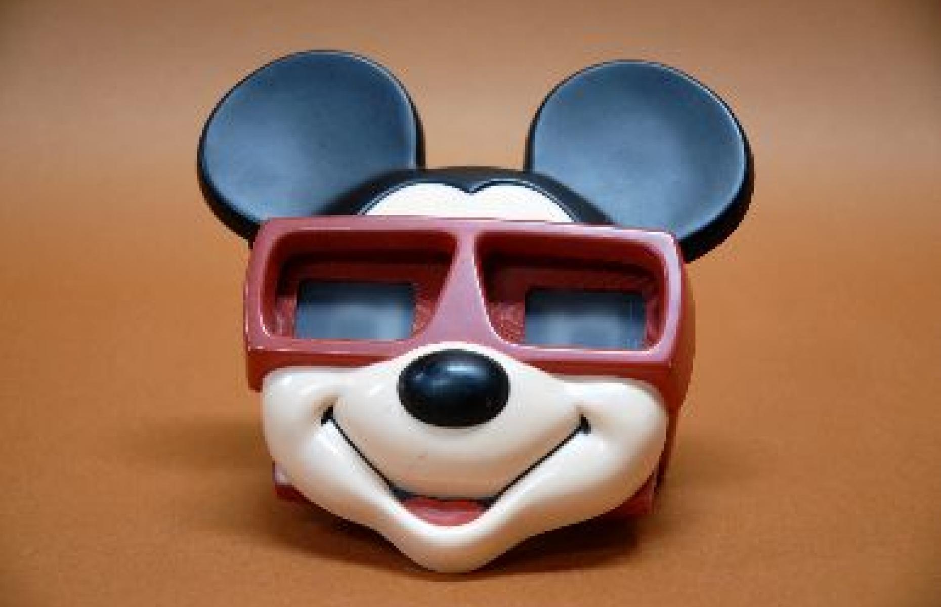Betrachtungsgerät mit zwei Gucklöchern und integrierten kleinen Linsen, das direkt vor die Augen gehalten wird. Die Bilder sind in Form von Dias auf eine Pappscheibe aufgebracht. Die einzelnen Scheiben auch "Reels" genannt, bestehen aus sieben Stereo-Bildpaaren. Nach dem stereoskopischen Prinzip wird jedem Auge eine jeweils leicht unterschiedliche Version desselben Bildes gezeigt, sodass ein dreidimensionaler Eindruck vermittelt wird. Für den Betrachter scheint sich dadurch ein kleiner Raum zu öffnen, indem eine greifbare Welt existiert. Die Funktionsweise des View-Masters hat sich bis heute nicht grundsätzlich geändert. Der seitlich angebrachte Hebel dient zum Drehen der Scheibe.